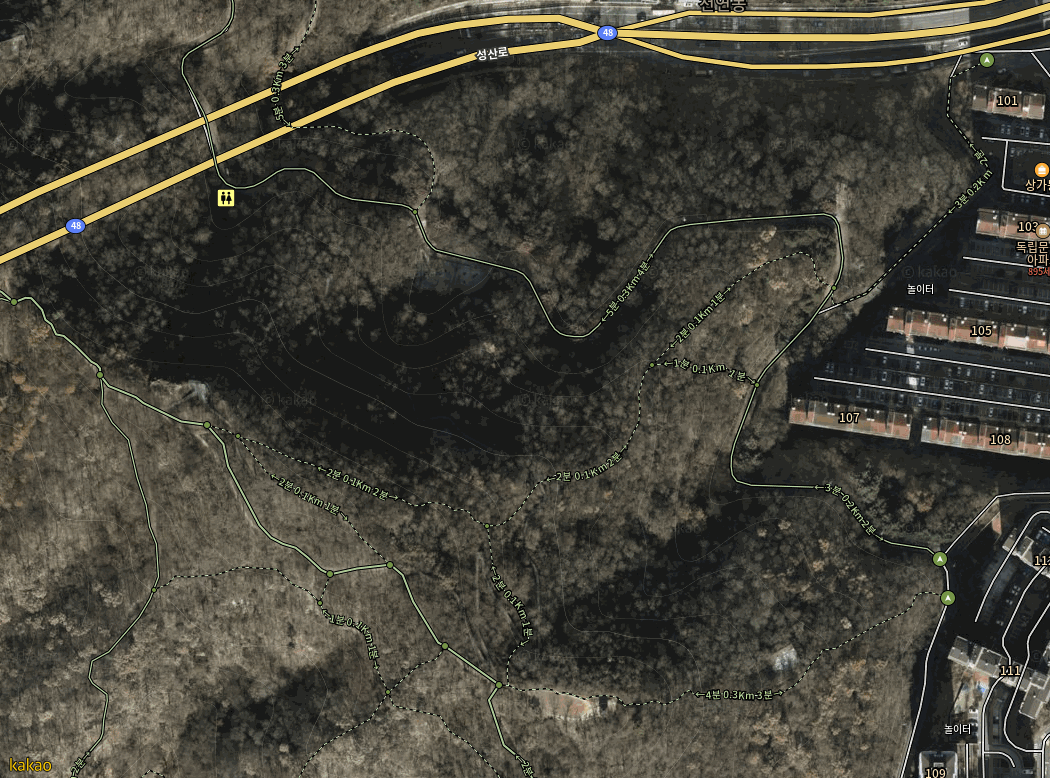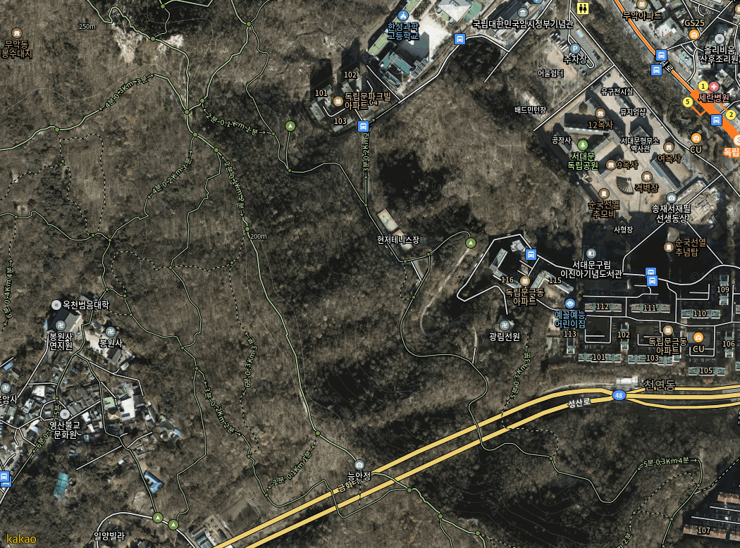 북카페쉼터 → 천연마당 → 안산마당 → 능안정. 서울 시내를 한눈에 내려다보는 능안정에서 잠시 숨 고르기. 인증샷 포인트.
